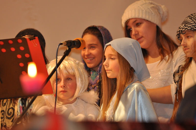 W pierwszej kolejności spotkania, które jako konferansjer poprowadził Paweł Urban, wystąpili członkowie scholi pod kierunkiem Joanny i Józefa Glamów. Grupa zaprezentowała przedstawienie nawiązujące do tradycji najpiękniejszych polskich świąt. Przeplatane było ono śpiewem kolęd, pastorałek oraz tematycznie związanych pieśni, a także wierszami Elżbiety Kotras.