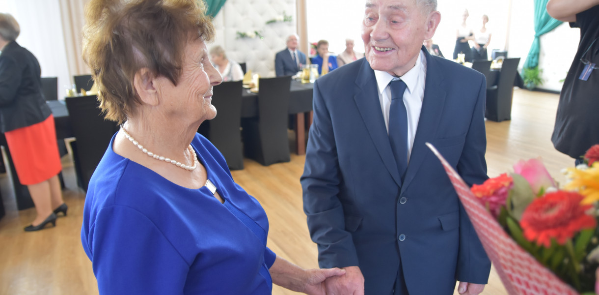 Małżonkowie z tak zacnym stażem, jak 50 i 60 lat, odebrali z rąk wójta Ireneusza Kucharskiego i kierownik Urzędu Stanu Cywilnego Hanny Kufel okolicznościowe medale. Poza tym na ręce jubilatek trafiły piękne bukiety kwiatów a ich małżonków prezenty. Pary przed urzędnikami podziękowały sobie za wspólne lata życia i przyjęły życzenia kolejnych lat w zdrowiu i miłości. Całość zwieńczył toast lampką szampana i poczęstunek. Więcej o jubileuszach w Gostycynie przeczytacie w świątecznym wydaniu Tygodnika. Już dzisiaj natomiast możecie zobaczyć część zdjęć z tej wzruszającej uroczystości.