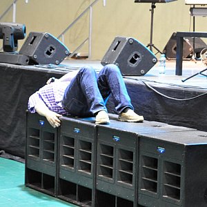 11 lipca przed godz. 9.00 zjawiam się przy hali. Już po chwili wita mnie uśmiechnięty, energiczny mężczyzna. To pastor Zbyszek Zarożny – Dyrektor Duszpasterstwa Młodzieży Kościoła Zielonoświątkowego, jak później się dowiaduję, główny koordynator i opiekun całego spotkania. Po krótkim, ale bardzo ciepłym przywitaniu Zbyszek wprowadza mnie do głównej sali. Zaczynam być lekko zdezorientowany, ale równie ogromnie ciekawy, co tu się dzieje. Sala i trybuny wypełnione są młodzieżą, przy wejściu każdy nowo przybyły witany jest gromkimi oklaskami i głośnym okrzykiem. W półmroku dostrzegam ustawioną na środku scenę, po bokach dwa telebimy. Panuje tu wesoła, bardzo przyjazna atmosfera. To Konferencja „Decydujący Moment” organizowana rokrocznie przez Kościół Zielonoświątkowy, tym razem w Tucholi od 8 do 13 lipca. Kilka sekund przed 9.00 zaczęło się wspólne odliczanie, a równo o pełnej godzinie światła na scenie rozbłysły i zespół „Zdobywcy”, który się tam pojawił, zaczął grać skoczną muzykę – rozpoczęła się tzw. sesja poranna. Kiedy zebrani usłyszeli pierwsze nuty, od razu wstali, na telebimach pojawił się tekst i wszyscy, jak wielki chór, przyłączyli się do śpiewu. Cała sala ożyła! Po chwili młodzież rozpierzchła się po sali, a do śpiewu dołączyła taniec i klaskanie. Była to muzyka jak najbardziej religijna, wychwalająca Boga, jednak taki sposób jej wykonywania widziałem pierwszy raz w życiu. Na scenie gitary elektryczne, perkusja, trąbka, klawisze, pod sceną klimat prawie koncertowy, ale tu nie chodziło o koncert. Można było zauważyć, że jest to modlitwa w najczystszej postaci, po prostu genialnie dostosowana do wieku zgromadzonych osób. Kiedy muzyka momentami ucichała, po hali rozchodził się ledwo słyszalny szept - ci młodzi ludzie wypowiadali swoje modlitwy. To „muzykowanie” nazywa się Uwielbieniem. Po czasie wspólnego śpiewania na scenę zaproszono gościa, którym w czwartek był Josh Cagle – amerykanin, syn misjonarzy, który wychował się w Meksyku. Postać nietuzinkowa, z tego człowieka energia aż się wylewała. Josh to człowiek pełen charyzmy, genialnie przemawiający i skupiający na sobie uwagę. Jego wykład trwał około półtorej godziny, a nie widziałem ani jednej znudzonej osoby. Sesja poranna skończyła się kolejnym Uwielbieniem.