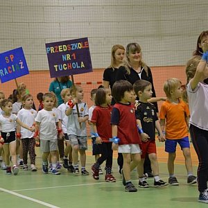 W sobotę w hali sportowo-widowiskowej Ośrodka Sportu i Rekreacji w Tucholi było niezwykle gwarnie i wesoło. Wszystko za sprawą I Olimpiady Przedszkolaka, którą pod patronatem burmistrza Tucholi zorganizowały Przedszkole nr 1 i Przedszkole nr 2 w Tucholi. W sportowych zmaganiach uczestniczyły dzieci z pięciu przedszkoli: Przedszkola nr 1, Przedszkola nr 2, Przedszkola w Raciążu, Legbądzie, Kiełpinie oraz dwóch oddziałów przedszkolnych przy Szkole Podstawowej nr 1 i nr 5 w Tucholi. Najmłodsi sportowcy pod czujnym okiem swoich opiekunów rywalizowali o puchar oraz cenne nagrody pieniężne na zakup sprzętu sportowego. Zawody rozpoczęły się od przemarszu drużyn i oficjalnego otwarcia olimpiady. Ceremonii dopełnili burmistrz Tadeusz Kowalski, dyrektorzy przedszkoli: Marzena Gumińska i Urszula Wegner oraz sędziowie: Piotr Czerwiński, Dariusz Szulc, Henryk Lorczak i Agnieszka Kloskowska. Mali sportowcy uczestniczyli w siedmiu konkurencjach sprawnościowych. Olimpiada okazała się dla dzieci wielkim przeżyciem i wspaniałą, ekscytującą zabawą. Napięcie towarzyszące imprezie dorównywało zawodom z udziałem dorosłych. Emocje udzieliły się również nauczycielom, rodzicom oraz dziadkom, którzy energicznie kibicowali i wspierali uczestników okrzykami i oklaskami zagrzewającymi do walki. Szczególnym momentem była dogrywka i I miejsce między drużynami z przedszkola w Legbądzie i z Przedszkola nr 1 w Tucholi. Aplauz wzbudziły także prezentowane w czasie przerw pokazy taneczne dzieci z Przedszkola nr 1 i Przedszkola nr 2, pokazy walk karate z udziałem grupy Shotokan Tomasza Krygowskiego, jak również pokaz tańca towarzyskiego w wykonaniu Anastazji Nagórki i Dawida Pateraka. Niezaprzeczalnym zwycięzcą I Olimpiady Przedszkolaka z sumą 22 punktów została drużyna małych sportowców z Legbąda. To do ich rąk trafił puchar burmistrza oraz nagroda w kwocie 500 zł. Aktu wręczenia dokonał Dariusz Siciński. II miejsce zajął zespół z Przedszkola nr 1 w Tucholi (22 punkty), a III miejsce – zespół z oddziału przedszkolnego przy Szkole Podstawowej nr 1 w Tucholi (19 punktów). Puchary oraz talony w kwocie 300 i 200 zł wręczył Artur Nagórka. Kolejne miejsca zajęły: przedszkole w Raciążu (17 punktów), przedszkole w Kiełpinie (12 punktów), Przedszkole nr 2 w Tucholi (11 punktów) i oddział przedszkolny przy Szkole Podstawowej nr 5 w Tucholi (9 punktów). Wszyscy zawodnicy otrzymali pamiątkowe medale oraz gratulacje od organizatorów.