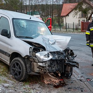 Funkcjonariusze tucholskiej jednostki ustalili, że kierujący 34-letni mężczyzna (gm. Śliwice) nie dostosował prędkości do warunków na drodze, w wyniku czego zjechał na przeciwległy pas, doprowadzając do zderzenia czołowego z prawidłowo jadącym pojazdem ciężarowym marki Volvo, którym poruszał się 58-letni mężczyzna (zam. Osie). Uczestnicy posiadają uprawnienia do kierowania i byli trzeźwi. Udzielono pomocy medycznej. Sprawca został ukarany mandatem karnym