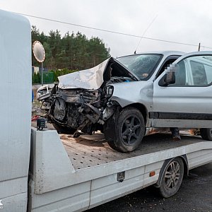 Wczesnym rankiem doszło do zderzenia czołowego dwóch pojazdów – ciężarowego, w którym znajdował się jedynie kierowca i osobowego. Nim podróżowały dwie osoby. Kierowca tego auta został zabrany do szpitala.