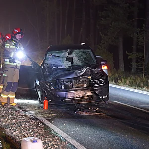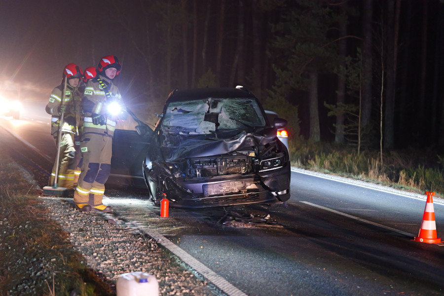 – Na tarasie Tuchola-Tleń doszło do kolizji drogowej. Policjanci wstępnie ustalili, że 68-letni kierowca volkswagena nie zachował bezpiecznej odległości i uderzył w poprzedzający go pojazd typu "harwester". Kierowca i pasażerka auta osobowego trafili na obserwację do szpitala – relacjonował funkcjonariusz Łukasz Tomaszewski. Co zrobił kierowca harwestera? – Kierujący maszyną leśną oddalił się z miejsca zdarzenia. Funkcjonariusze ustalają jego personalia i miejsce przebywania. Obecnie policjanci wykonują oględziny pojazdów oraz miejsca. Przesłuchiwani są także świadkowie – dodał policjant.