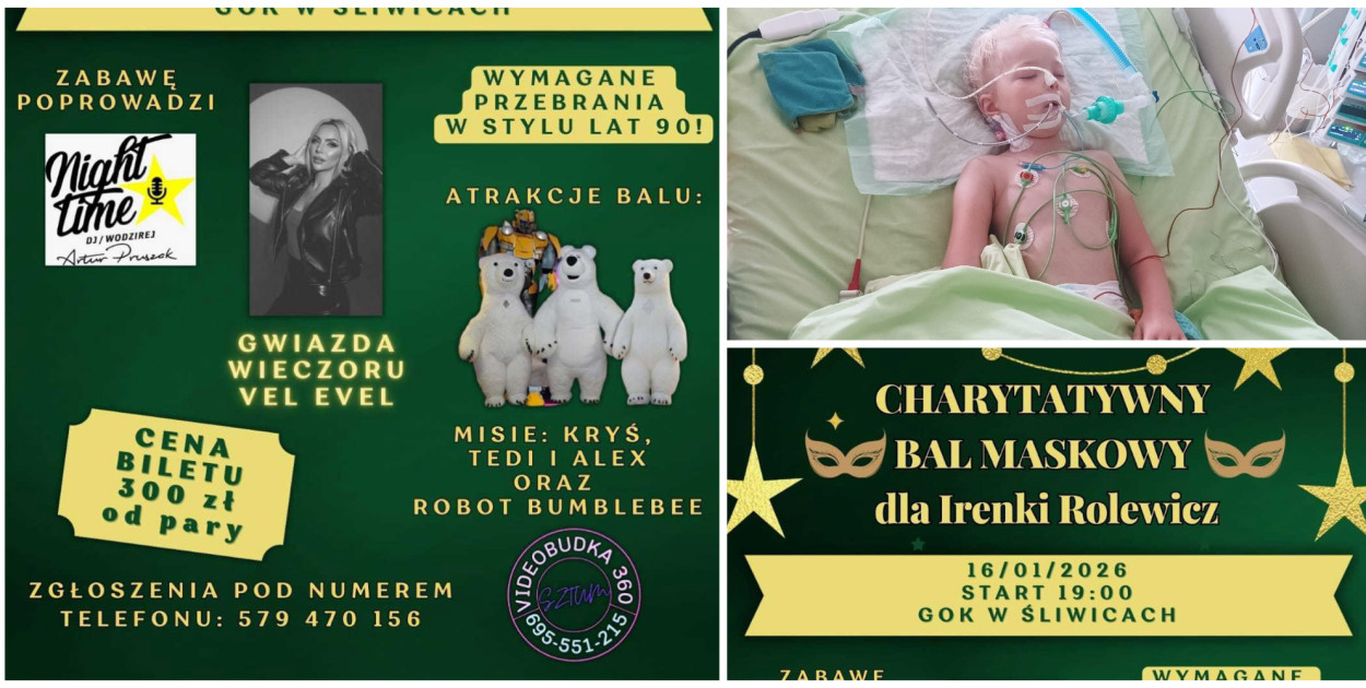 Mieszkańcy i instytucje z terenu gminy Śliwice kontynuują działania wspierające małą mieszkankę Irenkę Rolewicz ze Śliwic i jej rodzinę. Już za kilkanaście dni w GOK-u odbędzie się Charytatywny Bal Maskowy.
