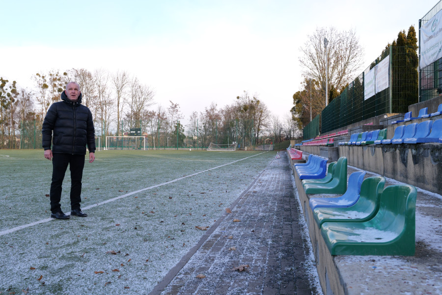 Remont dolnego boiska w Ośrodku Sportu i Rekreacji w Tucholi ma objąć wykonanie odwodnienia i wymianę sztucznej nawierzchni, remont trybun oraz montaż ławki dla niepełnosprawnych. Gmina ubiega się o dofinansowanie na zadanie ze środków Funduszu Rozwoju Kultury Fizycznej. Na zdjęciu dyrektor OSiR-u Wojciech Kociński.