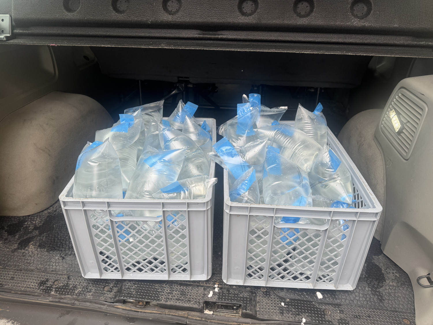 Woda w workach dostarczana mieszkańcom. Fot. PK w Tucholi