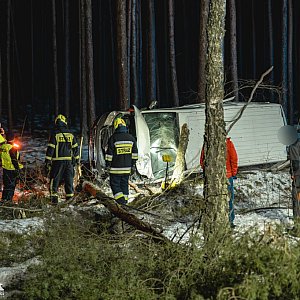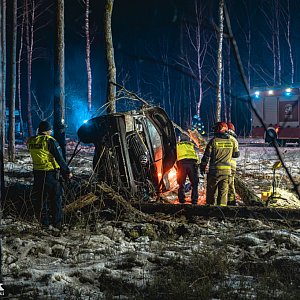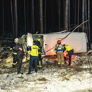 Wieczór na naszych drogach zaczął się stosunkowo spokojnie, ale zdarzenie między godz. 21:00-22:00 wyglądało bardzo poważnie. Do akcji ratunkowej na drodze wojewódzkiej nr 240 ruszyli strażacy z jednostek gminy Lubiewo i komendy w Tucholi. W okolicach Lubiewic z drogi wypadł kierowca prowadzący auto vw transporter, jechał od strony Świecia. Samochód ściął pobliskie drzewa zatrzymując się i leżąc na boku. Niezbędny był przyjazd zespołu ratownictwa medycznego, który zajął się kierowcą. Ten trafił do szpitala. Autem jechał sam.