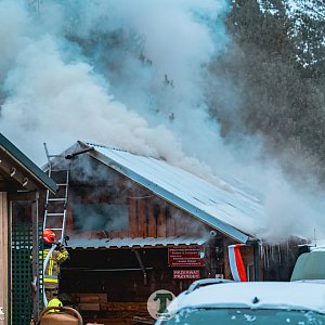 - Zgłoszenie o pożarze otrzymaliśmy o godzinie 6:42. Po przyjeździe stwierdzono pożar sufitu i poddasza w budynku mieszkalnym (dwa kontenery metalowe obite drewnem). Działania polegały na podaniu trzech prądów wody w natarciu. Aby skutecznie dotrzeć do ognia, strażacy musieli wyciąć otwory rewizyjne w poddaszu oraz rozebrać część konstrukcji dachu. Po ugaszeniu zarzewi ognia, pogorzelisko sprawdzono kamerą termowizyjną. Właściciel obiektu znajdował się na miejscu, nie odniósł obrażeń