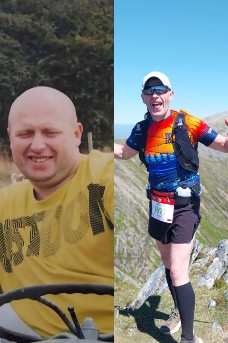 Jacek Nering z lewej przed przemianą. Z prawej w trakcie potężnego, sportowego wysiłku, który daje mu moc.