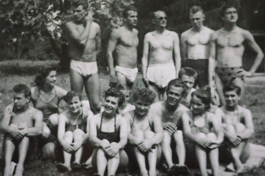 Obóz sportowy w Wysokiej koło Raciąża. W górnym rzędzie w środku działacz Jan Jałoszyński.