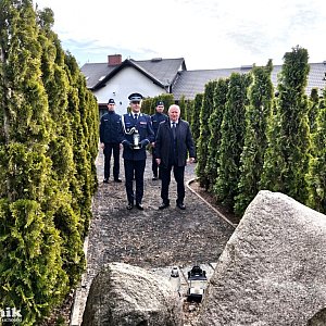 Tucholscy policjanci i licealiści uczcili pamięć zamordowanych funkcjonariuszy Policji Państwowej. Fot. KPP w Tucholi