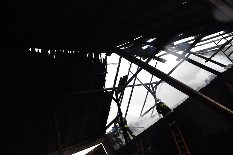 Na miejsce zaczęły docierać pierwsze zastępy strażackie, gdy z dachu spadały już palące się kawałki drewna. Mimo sporego zagrożenia dowodzący akcją podjął decyzję, że jest jeszcze możliwość wyprowadzenia ze stodoły pozostałych zwierząt. Znakomita większość została ocalona. Jedynie trzy lub cztery sztuki zdradzały objawy zatrucia się dymem.