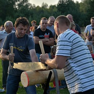 Sprawcą całego zamieszania jest Kamil Szarmach - drwal z niemałym dorobkiem konkursowym. To właśnie swoje pomysły na dyscypliny z pomocą Tomasza Krzemińskiego i licznego grona sponsorów prywatnych i publicznych wcielił w życie 26 lipca pod nazwą Super Drwal. Oglądalismy m.in. ścinkę 12-metrowych kłód, łupanie drewna, okrzesywanie a nawet otwieranie Mocnego Drwala piłą! Swoich sił w łupaniu kostek cukru czy "mojej-twojej" mogła spróbować publiczność. Nie obyło się bez niewielkiego rozlewu krwi. Sami drwale walczyli o medale jednak z pełnym poszanowaniem zasad BHP, impreza propagowała bowiem bezpieczną pracę w lesie. Zmagania, dowcipnie i z olbrzymią znajomością rzeczy, komentował Waldemar Wencel zastępca nadleśniczego nadleśnictwa Woziwoda. Trzeba przyznać, że kolejny medal powinien trafić właśnie do organizatorów - za świetną organizację imprezy.