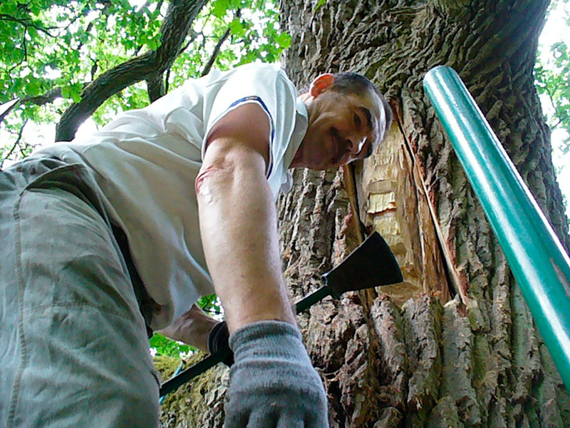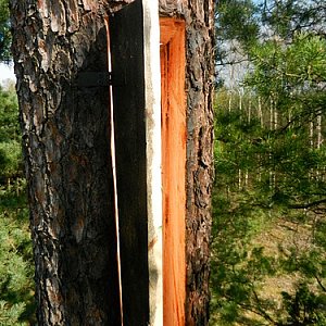 Pierwsza barć, jak już wspomnieliśmy, powstała w sośnie. Obecnie pracuje nad wykonaniem drugiej. Będzie założona na jednym z dębów na terenie Żółwińca.