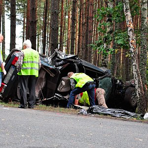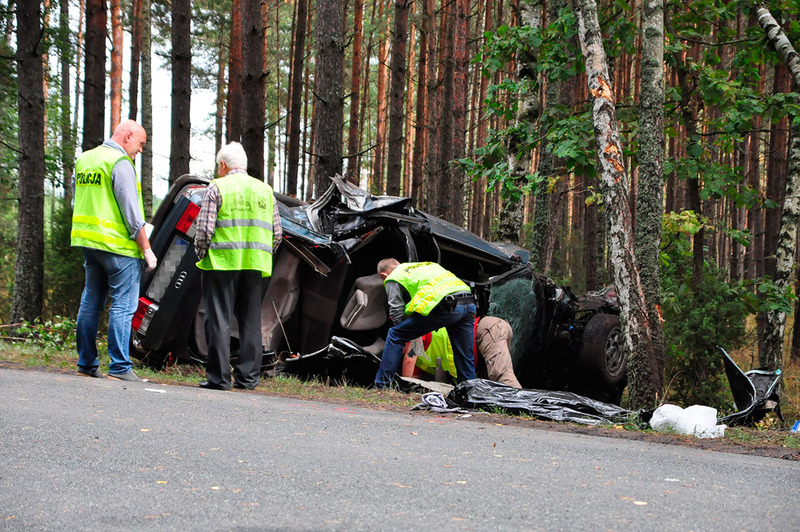 Mieszkaniec Białej tego dnia stał się 19-latkiem. Wsiadł za kierownicę samochodu należącego nie do niego, ale do rodziny. Jechał sam w stronę Czerska, był już za Legbądem, musiał widzieć tablicę oznaczającą granicę powiatu tucholskiego i naszego województwa. Wiele więcej już nie zobaczył, bo właśnie tam doszło do tragedii. Już na miejscu można było wstępnie wnioskować, co mogło się wydarzyć. Wystarczyło obejrzeć ślady i obserwować pracę policyjnych techników. Kierowca musiał nagle zjechać na pobocze, „ściągnęło” go do lasu. Samochód wbił się w drzewa, młody człowiek zginął na miejscu. Przy wraku leżało zakryte ciało. Niedaleko siedział ślepo wpatrzony w las bliski ofiary, który – jak opowiedzieli nam świadkowie – dotarł na miejsce niedługo po wypadku. Doglądali go policjant i jeden ze strażaków OSP.