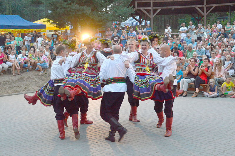 A co działo się na scenie? Na początku zaprezentowali się najmłodsi. Dziewczynki i chłopcy, przygotowani przez opiekunki ze świetlicy wiejskiej, odegrali krótkie scenki i wyśpiewali piosenki w borowiackiej gwarze. Dzieci prezentowały się w tradycyjnych strojach z naszego regionu. Około godziny 19.30 sceną zaczął rządzić zespół teatralno-taneczny Grzybianie wraz z gośćmi. Widownia szczelnie zapełniła się do ostatniego miejsca, a przed amfiteatrem rozpoczął się spektakl. Tancerze rozpoczęli tradycyjnym polonezem. Następnie aktorzy zaprezentowali fragment wesela Boryny z „Chłopów” Władysława Reymonta. Spektakl przeplatany był kolejnymi tańcami i trzeba przyznać, że całość wyglądała bardzo profesjonalnie i ciekawie. Niech o poziomie przedstawienia świadczą końcowe oklaski na stojąco i góralski taniec na bis. Nad całością czuwała Dorota Gromowska, a choreografią zajął się Waldemar Woźniak. Nazwiska wszystkich wykonawców można znaleźć poniżej.