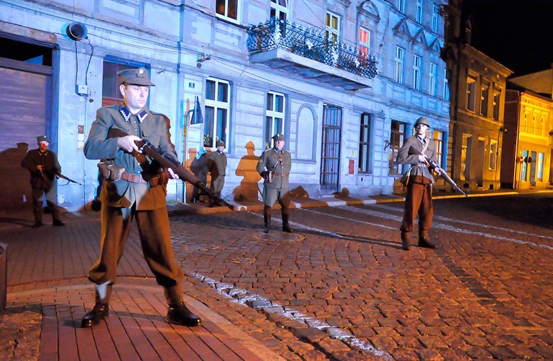 Od pomnika ruszyliśmy w kierunku rynku, a konkretnie plebanii, przechodząc przez Bramę Toruńską (lub Świecką). Tym razem przy plebanii tłumu nie witał ks. Jan Pałubicki, a sam ksiądz... ppłk. Józef Wrycza. Nie oznacza to, że ks. Pałubickiego nie było wśród ludzi. On też postanowił wyruszyć w trasę zaplanowaną przez Marię Ollick. Niedaleko od plebanii zatrzymaliśmy się przy aptece i zarazem naprzeciwko domu, w którym mieszkał kupiec Maćkowski, zamordowany w 1939 roku. Na aptekę trafiliśmy w czwartek, ale równie dobrze trafilibyśmy pod koniec XIX wieku. M.in. o tym opowiadała inicjatorka pochodu na tym przystanku wspominając, jak witany tam był w 1924 prezydent Stanisław Wojciechowski, a później – na wzór historycznego wydarzenia – prezydent Aleksander Kwaśniewski.