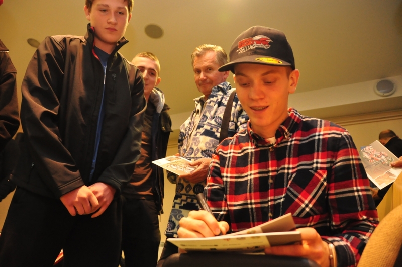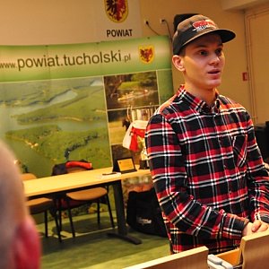 - Jeszcze kilka lat muszę pojeździć, żeby zapełnić tę salę - żartował w środę w tucholskiej książnicy żużlowiec, tucholanin, Szymon Woźniak patrząc na wiele pustych rzędów krzeseł. Podkreślić jednak trzeba, że miał za sobą tego samego dnia spotkania w dwóch w tucholskich szkołach więc do wieczora liczba ewentualnych fanów, którzy już go spotkali mogła się wyczerpać (spotkania organizowało tucholskie starostwo). Kiepska frekwencja spowodowała jednak, że Woźniak, aktualny Indywidualny Młodzieżowy Mistrz Polski, co jest jego bezsprzecznie aktualnie największym sukcesem, rozmawiał z obecnymi, jak ze starymi znajomymi. Rozluźnił się na tyle, że w końcu prosił nas, żeby niektórych rzeczy z opowieści o kuluarach dyscypliny, która uprawia, nie notować i później nie publikować, żeby nie narobiły zamieszania. Zgodziliśmy się. Mimo wszystko ciekawostkami z tego bardzo długiego, pełnego przeróżnych wątków nie tylko dotyczących żużla, zapełnić można byłoby kilka stron „Tygodnika”...