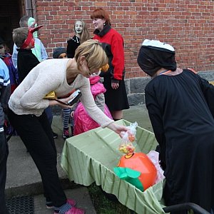 Podczas spaceru do barwnej grupy dołączyły kolejne dzieci. Pukały do drzwi i chórem mówiły: „Cukierek albo psikus”. Nikt nie odmówił im podarku. Po dwóch godzinach spaceru około 20 przebierańców wróciła do świetlicy. Uzbierali: 31 kg różnych słodkości i 45 zł od osób, które zapomniały lub nie zdążyły kupić cukierków.