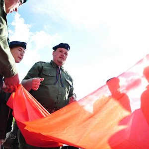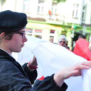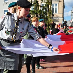 Tucholskie obchody miały kameralny charakter, ale nie mogło zabraknąć przemarszu z kilkudziesięciometrową, biało-czerwoną flagą. Z rynku do kościoła pw. Bożego Ciała nieśli ją organizatorzy przedsięwzięcia, oficjele, harcerze i mieszkańcy miasta, w skromnej liczbie.