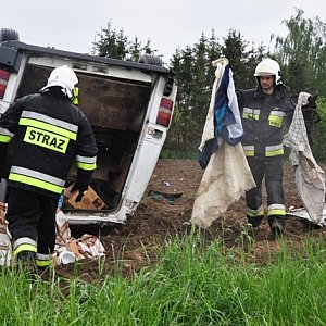 Dziś (środa, 20 maja), koło godz. 15.00 bus starszego typu jechał odcinkiem DW 237 Tuchola-Gostycyn. Z na razie nieokreślonej oficjalnie przyczyny zjechał drogi, dachował i właśnie na dachu zatrzymał się na polu. Opady deszczu sprawiają, że jazda tamtędy nie należy do komfortowych. Wiemy, że samochodem podróżowało kilka osób, w tym dziecko. To mieszkańcy powiatu tucholskiego. Karetka zabrała je do szpitala. Droga jest przejezdna.