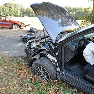 Dwa samochody osobowe zderzyły się dziś (9 października) czołowo-bocznie tuż na wjeździe do Kęsowa od strony Sicin.