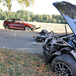 Do groźnie wyglądającego zderzenia opla i seata doszło dziś (9 października) ok. godz. 14.00. Opel jechał od strony centrum Kęsowa, seat od strony Sicin, chociaż na naszych zdjęciach widać, że mogło być odwrotnie. Samochody od siły uderzenia obróciło i wypadły poza jezdnię. Kierowcy samochodów zostali zabrani do szpitala.