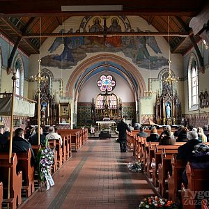 Uroczystości żałobne odbywały się w parafii pw. Przemienienia Pańskiego w Bysławiu. Część uroczystości, ze względu na obecność delegacji z zagranicy, księża tłumaczyli na język niemiecki i angielski. W imieniu władz od szczebla gminnego do wojewódzkiego Janusza Kiedrowskiego żegnał wójt gminy Lubiewo Michał Skałecki. Mówił o zasługach zmarłego, wyróżnieniach i charakterze.