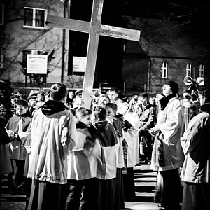 W Wielki Piątek wykonywaliśmy zdjęcia podczas . O podobnej porze wierni nieśli krzyż także ulicami Cekcyna.