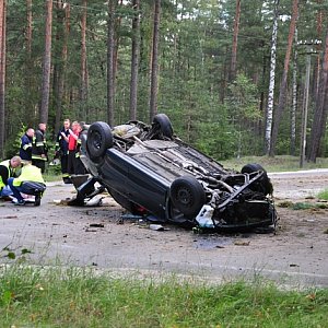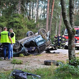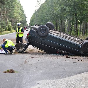 Droga Tuchola-Tleń była dziś rano (wtorek, 30 sierpnia) zablokowana po tym, jak dachował opel vectra, którym jechało dwoje młodych ludzi z gminy Śliwice - mężczyzna i kobieta. Relacja policji opiera się m.in. na opowieści świadków. Oni jechali autami, które właśnie wspomniany opel vectra wyprzedzał. Przy tym manewrze złapał pobocze, stracił kontrolę nad samochodem, aż dachując zakończył jazdę na skraju lasu.