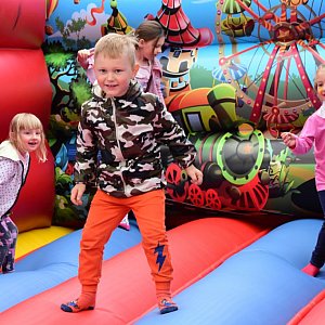 Powodzeniem cieszyły się także dmuchańce. Młodsi opanowali zamek, a starsi zjeżdżalnię. W przerwach występów specjalnie zaproszona grupa animatorów zorganizowała dla wszystkich uczestników liczne konkursy i dodatkowe zabawy.
