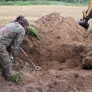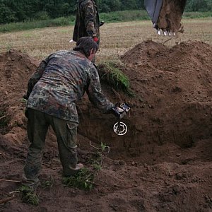 Kopiący znaleźli również 9 nieśmiertelników. Dwa się rozpadły, ale napisy na 7 pozostałych można odczytać. Były też rozwalony hełm, metalowe guziki, scyzoryk, kawałek okularów, sprzączki, manierka i menażka.