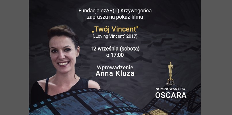 W sobotę, 12 września o godz. 17:00 w Krzywogońcu odbędzie się pokaz nominowanego do Oscara filmu "Twój Vincent". O filmie opowie jego współautorka - Anna Kluza. Artystka realizuje się głównie w malarstwie i rzeźbie, tworząc w oryginalnej, niespotykanej technice, która pozwala obrazom "wychodzić" w przestrzeń. Od kilku lat pracuje jako malarka animatorka dla wytwórni filmowej BreakThru Films. Brała udział w tworzeniu nominowanego do Oscara filmu „Twój Vincent” („Loving Vincent” 2017), pierwszej na świecie pełnometrażowej animacji malarskiej. Anna Kluza miała ogromny wpływ na realizację tego filmu jako supervisorka, projektantka klatek kluczowych i malarka animatorka. Jest także autorką obrazu z odwracającym się Vincentem van Goghiem, który stał się ikoną produkcji.