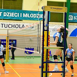 Pierwszy set meczu w lidze wojewódzkiej kadetek był zapowiedzią kolejnych, w których stosunek małych punktów obu zespołów był podobny, a świadczył jednoznacznie o przewadze gospodyń. Nielicznymi przebłyskami formy tucholanek było kilka bloków i mocnych zagrywek, ale na mocny zespół to było zbyt mało.