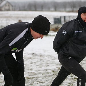 Zero stopni to jeszcze nie dramat w środku zimy, ale gdy chce się zagrać i zgromadzić grupę aktywnych kibiców, którzy w sezonie licznie stawiali się na meczach ligowych, nie jest to łatwa sprawa. W dodatku posylwestrowy czas robi swoje. Mówiąc inaczej: mecz nie ściągnął na boisko w Żalnie kibiców poza jedną parą dopingujących (kontuzjowany piłkarz KS-u Żalno Piotr Folega z żoną Dorotą) i sołtysem Żalna Dariuszem Sikorskim. Chwała tym ostatnim za wytrwałość, bo w zimnicy obejrzeli cały mecz. Samo spotkanie trwało 2 x 30 minut i było rozgrywane na zmniejszonym polu gry, co ciekawe - z ustawionymi małymi bramkami do unihokeja. Z początku wydawało się, że bardzo trudno będzie trafić w tę niewielką przestrzeń między słupkami przy dość śliskiej, pokrytej śniegiem nawierzchni. Gdy się jednak piłkarze rozochocili i porządnie rozegrali, doliczono się aż czternastu trafień. Mecz sędziował trener Andrzej Kobus.