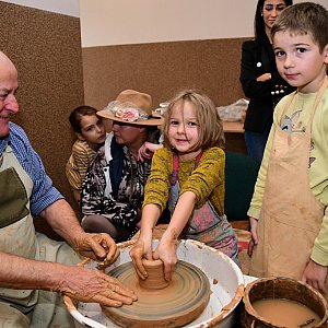 Po teatralnym wstępie przyszedł czas na część warsztatową. Tutaj całe rodzinny bawiły się przy kole garncarskim oraz w trakcie zajęć lepienia z gliny. Były też warsztaty plastyczne z borowiackimi motywami, a nawet... szybki kurs kiszenia kapusty z Frantówkami Bysławskimi.