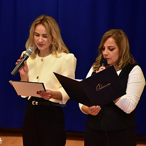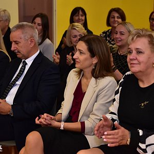 Po części artystycznej, przyszedł czas na przemówienie burmistrza Tadeusza Kowalskiego i wręczenie przez niego nagród oraz podziękowań dla przedstawicielek placówek oświatowych z terenu gminy Tuchola, a także urzędników czuwających nad gminną oświatą.