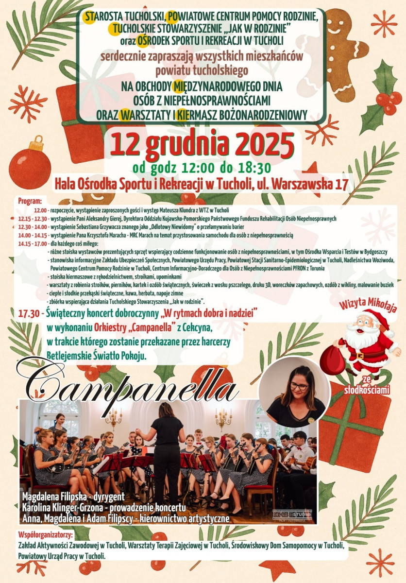 W najbliższy piątek (12 grudnia) w Ośrodku Sportu i Rekreacji w Tucholi odbędzie się duże, ponad sześciogodzinne wydarzenie poświęcone obchodom Międzynarodowego Dnia Osób z Niepełnosprawnościami, połączone z tematyką bożonarodzeniową.