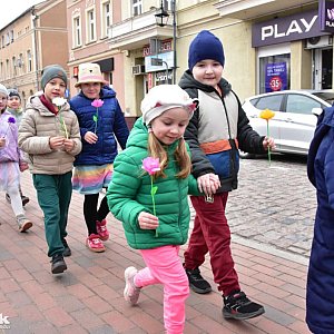 Przez Plac Wolności przeszedł barwny i gwarny korowód dzieci, które wydawały radosne okrzyki "chcemy wiosny", śpiewały tematyczne piosenki i dumnie prezentowały przygotowane transparenty. Przechodnie podziwiali przygotowane widowisko, a niektórzy otrzymywali ręcznie robione kwiaty. Na Placu Wolności dzieci stanęły do pamiątkowego zdjęcia, skąd udały się w drogę powrotną do szkoły.