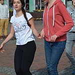 O takie widoki na tucholskim rynku trudno. Uczniowie ZSLiA tańczyli na rynku beligijkę.