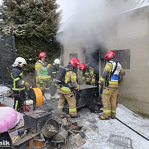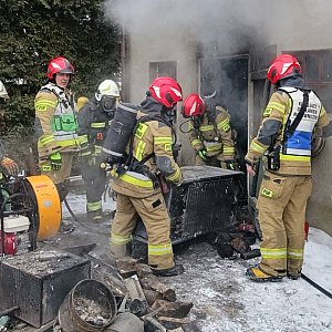 Płonące auto i płachta gaśnicza. Szkolenie strażaków