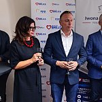 Otwarcia biura poselskiego KO w Tucholi. Iwona Karolewska i Krzysztof Brejza. Wśród gości lokalni samorządowcy.
