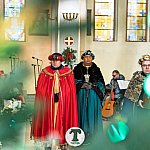 Orszak Trzech Króli 2026 w Tucholi. Wydarzenie zorganizowała parafia Bożego Ciała. Rozpoczęło się na tucholskim rynku i procesją przeniosło do kościoła.