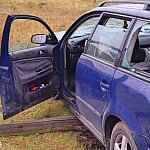 Legbąd: Kierowca passata ściął słup telefoniczny