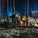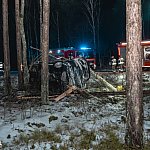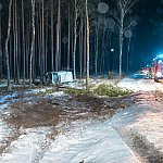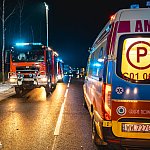 Piątek trzynastego. Wypadek na DW240 w okolicach Lubiewic. Kierowca Transportera został zabrany do szpitala. 13 lutego 2026.
