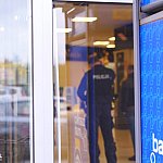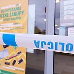 Włamanie i kradzież? Działania policji w Polo Markecie na ul. Warszawskiej w Tucholi we wtorek (7 kwietnia), od godz. 7:00.