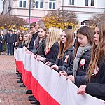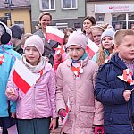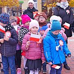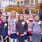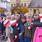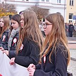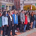 SP 1 i ZSLiA w Tucholi śpiewają hymn Polski - 7 listopada na rynku w Tucholi.
