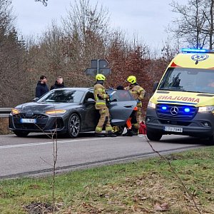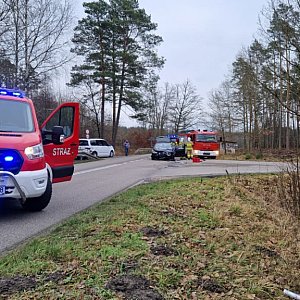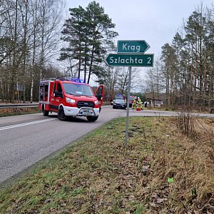 Do zderzenia dwóch pojazdów osobowych doszło w miejscowości Krąg, dokładanie jest to skrzyżowanie z Kręga na Szlachtę, bardzo blisko leśniczówki Zielony Dół w nadleśnictwie Woziwoda. Tam doszło do zderzenia czołowo-bocznego. Łącznie w pojazdach znajdowały się 3 osoby. Jedna z nich została poszkodowana. W tej chwili została przekazana zespołowi ratownictwa medycznego. Jest przytomna, w stanie ogólnym dobrym