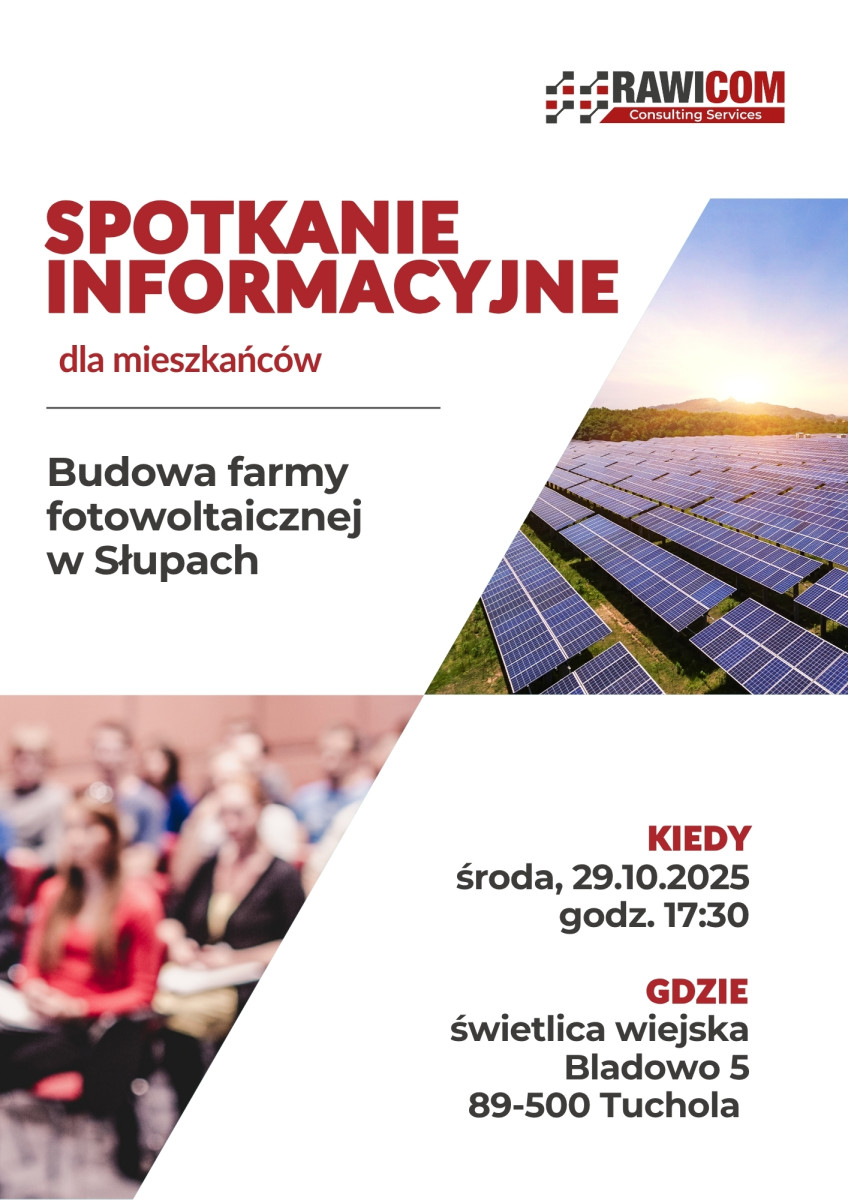 Trwają procedury związane z budową nowoczesnej farmy fotowoltaicznej w gminie Tuchola. Planowana moc instalacji może wynieść do 190 MW, co oznacza ogromny zastrzyk czystej, ekologicznej energii dla lokalnej społeczności i pobliskich gospodarstw. Inwestycja to również stały dochód dla gminy przez kolejne dekady – środki z podatków będą mogły zostać przeznaczone na remonty dróg, modernizację infrastruktury czy organizację wydarzeń lokalnych. Inwestor zaprasza na otwarte spotkanie informacyjne dla mieszkańców.