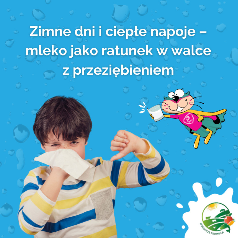 Zimowa pora to czas, gdy przeziębienia występują znacznie częściej. Zmiany temperatury, długotrwałe przebywanie w ogrzewanych pomieszczeniach oraz osłabiona odporność sprzyjają rozprzestrzenianiu się wirusów i bakterii. Aby wzmocnić odporność, warto zadbać o odpowiednią dietę, w której mleko i jego przetwory odgrywają istotną rolę, zwłaszcza w okresie zimowym. #FunduszePromocji